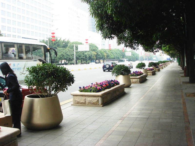 戶外使用的花槽一般是木質(zhì)或者水泥材質(zhì)的,比較低端,產(chǎn)品壽命都不太久,而采用不銹鋼材質(zhì)制作而成的不銹鋼花槽和花缽就很耐用,也顯得很有檔次,是各種園林景觀工程中比較重要的產(chǎn)品之一。花槽在植物的綠蔭下要顯得既好看又實用。而在秋季綠蔭退去后也要能夠體現(xiàn)出花架本身的美感。因此要把花槽作為一件藝術(shù)品,而不單作構(gòu)筑物來設計,應注意比例尺寸、選材和必要的裝修。花槽體型不宜太大,太大了不易做得輕巧,太高了不易蔭蔽而顯空曠,盡量接近自然。